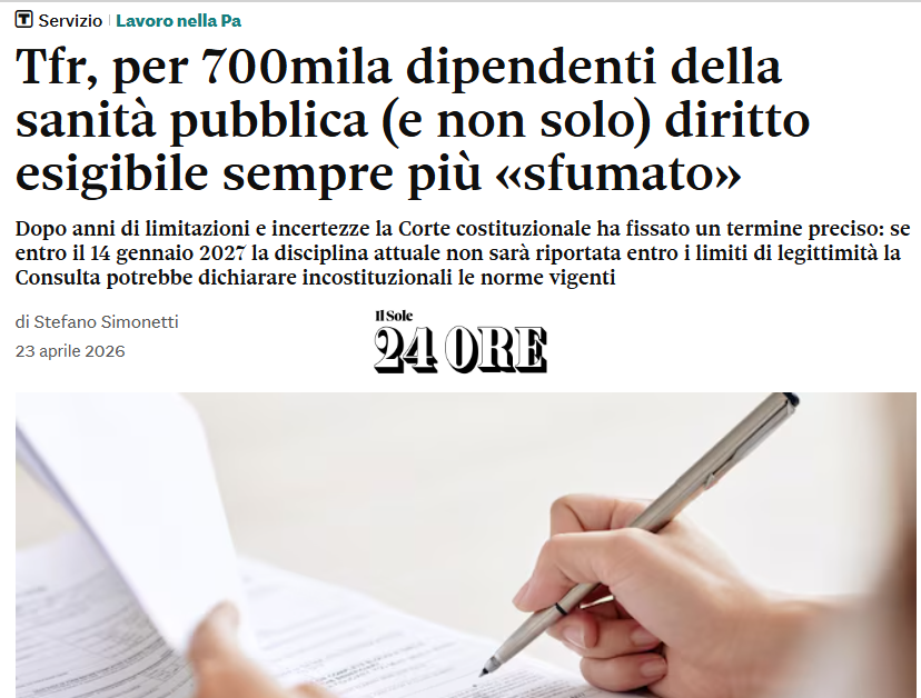 Il Sole24ore riporta l’attenzione sulla questione del TFS e sulla nostra vittoria in Corte Costituzionale che ha dato 9 mesi al governo per adeguarsi. Intanto il 14 gennaio si avvicina.